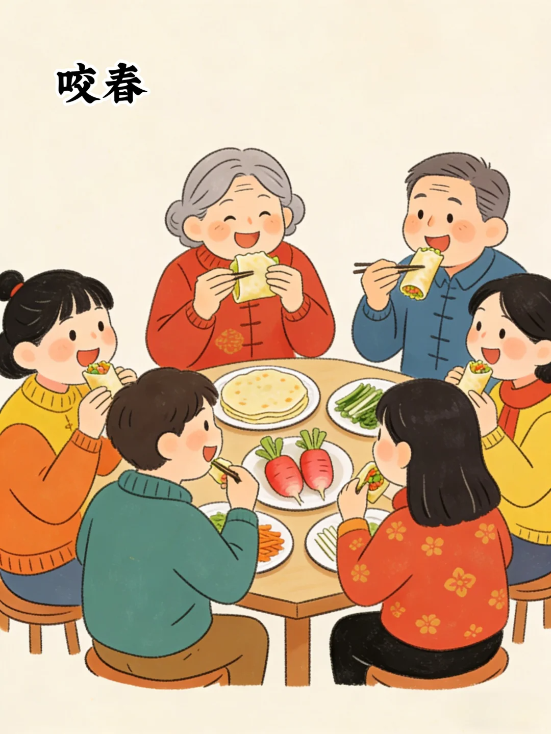咬春是立春最具代表性的习俗。人们会吃萝卜、生菜、春饼等食物,寓意“咬住春气”,祈求一年顺遂安康。老北京的春饼卷着豆芽、韭菜、酱肉,薄皮裹着鲜香;南方的春卷酥脆可口,咬下去满是春日的清爽,一口咬春,便将春的生机纳入腹中。